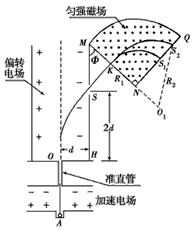 (3)若质量为4m的离子垂直打在NQ的中点S1处,质量为16 m的离子打在S2处,求S1和S2之间的距离以及能打在NQ上的正离子的质量范围。