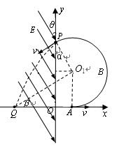 3、计算题 如图,直角坐标系在一真空区域里,y轴的左方有一匀强电场,场强方向跟y轴负方向成θ=30°角,y轴右方有一垂直于坐标系平面的匀强磁场,在x轴上的A点有一质子发射器,它向x轴的正方向发射速度大小为v=2.0×106m/s的质子,质子经磁场在y轴的P点射出磁场,射出方向恰垂直于电场的方向,质子在电场中经过一段时间,运动到x轴的Q点。已知A点与原点O的距离为10cm,Q点与原点O的距离为(20-10)cm,质子的比荷为