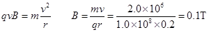 设磁感应强度为B,根据质子的运动方向和左手定则,可判断磁感应强度的方向为垂直于纸面向里。(1分)