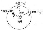 2、选择题 2014年3月8日凌晨马航客机失联后,西安卫星测控中心紧急调动海洋、风云、高分、遥感4个型号近10颗卫星,为地面搜救提供技术支持。特别是“高分一号”突破了空间分辨率、多光谱与大覆盖面积相结合的大量关键技术。如图为“高分一号”与北斗导航系统两颗卫星在空中某一面内运动的示意图。“北斗”系统中两颗卫星“G1”和“G3”以及“高分一号”均可认为绕地心O做匀速圆周运动。卫星“G1”和“G3”的轨道半径为r,某时刻两颗工作卫星分别位于轨道上的A、B两位置,“高分一号”在C位置。若卫星均顺时针运行,地球表面处的重力加速度为g,地球半径为R,不计卫星间的相互作用力。则下列说法正确的是