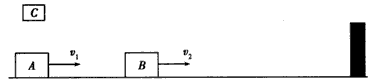 4、计算题 如图所示,滑块A、C质量均为m,滑块B质量为。开始时A、B分别以v1、v2的速度沿光滑水平轨道向固定在右侧的挡板运动,现将C无初速地放在A上,并与A粘合不再分开,此时A与B相距较近,B与挡板相距足够远。若B与挡板碰撞将以原速率反弹,A与B碰撞将粘合在一起。为使B能与挡板碰撞两次,v1、v2应满足什么关系?