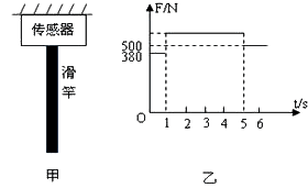 3、计算题 如图甲所示为学校操场上一质量不计的竖直滑竿,滑竿上端固定,下端悬空。为了研究学生沿竿的下滑情况,在竿的顶部装有一拉力传感器,可显示竿的顶端所受拉力的大小。现有一质量m=50kg的学生(可视为质点)从上端由静止开始滑下,5s末滑到竿底时速度恰好为零。以学生开始下滑时刻为计时起点,传感器显示的拉力随时间变化情况如图乙所示,g取