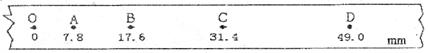 1kg,打点纸带如图所示,打点时间间隔为0. 02s,图中O为第一个点,测出A、B、C、D距O点的距离如图所示,则记录B点时,重锤的速度vB=?m/s,重锤的动能EK=?J,从开始下落起至B点重锤的重力势能的减小量是?J,由此可得出的结论是?。(