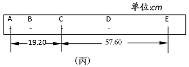 (3)某同学在做验证机械能守恒定律的实验中,使用50Hz交变电流作电源,在打出的纸带上选择5个计数点A、B、C、D、E,相邻两个计数点之间还有4个点没有画出,他测量了C点到A点、和E点到C点的距离,如图(丙)所示。则纸带上C点的速度