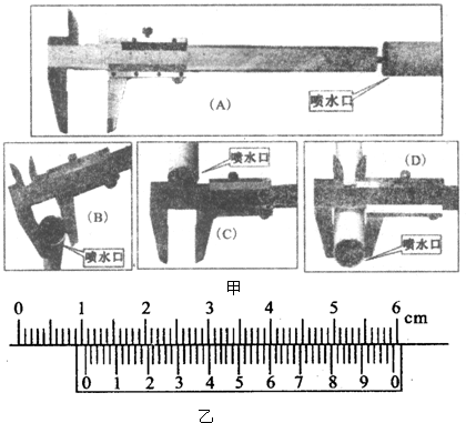 (1)先用游标卡尺测量喷水口的内径D.如图甲所示,A、B、C、D四个图中,测量方式正确的是______.
