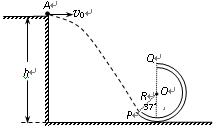 圆管轨道,其半径为R=0.5m,内径很小。平台高h="1.9" m,一质量m=0.5kg、直径略小于圆管内径的小球,从平台边缘的A处水平射出,恰能沿圆管轨道上P点的切线方向进入圆管内,轨道半径OP与竖直线的夹角为3
