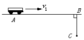 2、计算题  如图所示,公路上一辆汽车以v1 = 10 m/ s的速度匀速行驶,汽车行至A点时,一人为搭车,从距公路30m的C处开始以v2 = 3m/ s的速度正对公路匀速跑去,司机见状途中刹车,汽车做匀减速运动,结果人到达B点时,车也恰好停在B点。已知AB = 80m,问:汽车在距A多远处开始刹车,刹车后汽车的加速度有多大?
