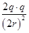 5、选择题 如图所示,光滑水平桌面上有A、B两个带电小球(可以看成点电荷),A球带电量为+2q,B球带电量为-q,由静止开始释放后A球加速度大小为B球的两倍。现在AB中点固定一个带电C球(也可看作点电荷),再由静止释放A、B两球,结果两球加速度大小相等。则C球带电量为