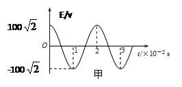 1、选择题 一台小型发电机产生的电动势随时间变化的规律图像如图甲所示,已知发电机线圈内阻为20.0Ω,现外接一只“100V,125W”的灯泡,如图乙所示,则: