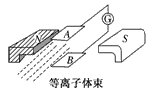 2、选择题 目前,世界上正在研究一种新型发电机叫磁流体发电机。如图所示表示了它的发电原理:将一束等离子体喷射入磁场,磁场中有两块金属板A、B,这时金属板上就会聚集电荷,产生电压。如果射入的等离子体的初速度为v,两金属板的板长(沿初速度方向)为L,板间距离为d,金属板的正对面积为S,匀强磁场的磁感应强度为B,方向垂直于离子初速度方向,负载电阻为R,电离气体充满两板间的空间。当发电机稳定发电时,电流表的示数为I。那么板间电离气体的电阻率为