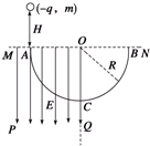 1、选择题 如图,MPQO为有界的竖直向下的匀强电场,电场强度为E,ACB为光滑固定的半圆形轨道,轨道半径为R,A、B为圆水平直径的两个端点,AC为圆弧.一个质量为m,电荷量为-q的带电小球,从A点正上方高为H处由静止释放,并从A点沿切线进入半圆轨道.不计空气阻力及一切能量损失,关于带电小球的运动情况,下列说法正确的是( )