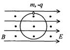 5、选择题 在光滑竖直的绝缘圆环上,套有一个带负电、可以沿绝缘圆环自由滑动的小球,整个装置放在如图所示的正交匀强电磁场中(其中电场方向水平向右,磁场方向垂直纸面向外),设小球从环的顶点无初速释放,在沿环滑动过程中所受电场力与重力大小相等,则当小球滑过的弧度为下述何值时,它受到的洛仑兹力最大