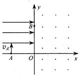 )。有一个带正电的粒子从A点以初速度vA沿y轴正方向射入匀强电场区域,经过B点进入匀强磁场区域,然后经x轴上的C点 (图中未画出)运动到坐标原点O。不计重力。求: