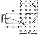 5、计算题 (12分)如图所示,一带电微粒质量为m=2.0×10-11kg、电荷量q=+1.0×10-5C,从静止开始经电压为U1=100V的电场加速后,水平进入两平行金属板间的偏转电场中,微粒射出电场时的偏转角θ=30?,并接着进入一个方向垂直纸面向里、宽度为D=34.6cm的匀强磁场区域。已知偏转电场中金属板长L=20cm,两板间距d=17.3cm,重力忽略不计。