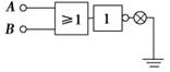 2、选择题 如图所示,由门电路组成的电路,输出端为“1”,指示灯L亮,输出端为“0”,指示灯L不亮,现要使灯L亮,则A、B两输入端分别是( )