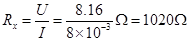 ①先把开关S拨向Rx,调节滑动变阻器,使电压表和电流表有一合适的读数,并记录两表的读数,U=8.16V,I=8mA,用伏安法初步估测电阻Rx的大小为 Ω。