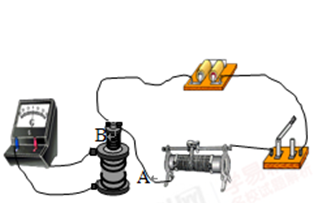 5、实验题 下图是探究感应电流与磁通量变化关系的实验,线圈A与电流表相连,线圈B通过变阻器和开关连接在电源上,则可以看到电流表指偏转的是 (填序号)。从中可以得出闭合回路产生感应电流的条件: 。