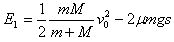 用E1表示在碰撞过程中损失的机械能,则E1=E-W ⑧