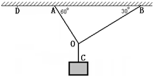 3、简答题  如图所示,三根轻质绳子OA、OB与OC将一质量为10kg的重物悬挂空中而处于静止状态,其中OB与天花板夹角为30°,OA与天花板夹角为60°,g取10m/s2)