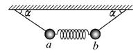 4、选择题 如图所示,轻弹簧两端拴接两个小球a、b,拴接小球的细线固定在天花板,两球静止,两细线与水平方向的夹角α=30°,弹簧水平,以下说法正确的是( )