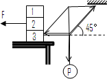 3、选择题  如图所示,三个物块重均为100N,小球P重20N,作用在物块2的水平力F=30N,整个系统平衡,则桌面对物块3的摩擦力为
