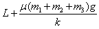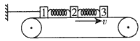 4、选择题  如图所示,在水平传送带上有三个质量分别为m1,m2,m3的木块1,2,3(可视为质 点),中间分别用原长均为L、劲度系数均为k的轻弹簧连接,木块与传送带间的动摩擦因数均为μ。现用水平细绳将木块1固定在左边的墙上,让传送带按图示方向匀速运动,当三个木块达到平衡后,1,2两木块间的距离是