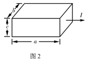 如图2所示,若磁场方向与金属导体板的前后表面垂直,通过所如图所示的电流I,可测得导体板上、下表面之间的电势差为U,且下表面电势高。已知导体板的长、宽、高分别为a、b、c,电子的电荷量为e,导体中单位体积内的自由电子数为n。求: