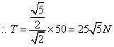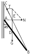 5、计算题 如图,重50N的均匀直棒AB,A端靠在光滑墙上,B端拴一轻绳,绳的另一端固定在墙上的C点,棒与竖直方向成45°角而处于静止,设棒长为2m,求: