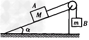 2、选择题 如图所示,质量为m0,倾角为α的斜面静止在粗糙的水平面上,滑轮的质量和摩擦不计,质量为M的物体A与斜面的动摩擦因数为μ(设最大静摩擦力与滑动摩擦力大小相等),质量为m的物体B通过定滑轮用细线与物体A相连接。则?