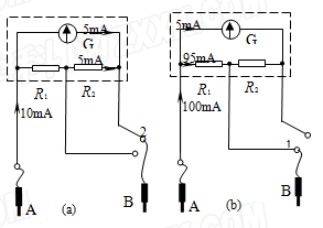 依题意, 转换开关S在1(如图b)时,电流表的量程为