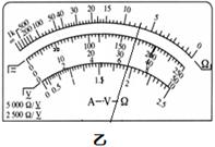④某次测试结果如图乙所示 ,灯泡电阻读数为 _ Ω。