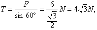 由平衡条件可得:F"=Tcos60°,F=Tsin60°