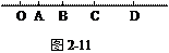 1、简答题 如图2-11(原图2-16)所示,物体自O点由静止开始做匀加速直线运动,A、B、C、D为其轨道上的四点,测得AB=2m,BC=3m,CD=4m.且物体通过AB、BC、CD所用的时间相等,求OA间的距离.[3]
