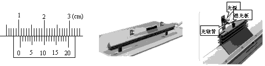 2、实验题  为测定气垫导轨上滑块的加速度,滑块上安装了遮光板。滑块在牵引力作用下从静止开始运动,滑块从开始运动到遮光板刚遮住光电门所用时间t=3.5s,配套的数字毫秒表记录的遮光板通过光电门所用时间为Δt=0.2s。