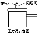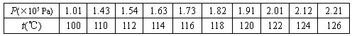 3、选择题 有一压力锅,锅盖上的排气孔截面积约为7.0×10-6 m2,限压阀重为0.7 N。使用该压力锅煮水消毒,根据下列水的沸点与气压关系的表格,分析可知压力锅内的最高水温约为(大气压强为1.01×105 Pa)