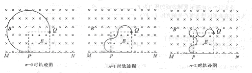 如图所示,直线MN下方无磁场,上方空间存在两个匀强磁场,其分界线是边长为a的正方形,内外的磁场方向相反且垂直于纸面,磁感应强度大小都为B,现有一质量为m,电荷量为q的带负电微粒从P点沿边长向左侧射出,要求微粒始终做曲线运动并最终打到Q点,不计微粒的重力,外部磁场范围足够大,求:从P点到Q点,微粒的运动速度大小及运动时间。