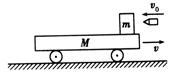 (2)(9分)如图所示,在光滑水平面上有一辆质量M="8" kg的平板小车,车上有一个质量m="1.9" kg的木块,木块距小车左端6 m(木块可视为质点),车与木块一起以v="1" m/s的速度水平向右匀速行驶. 一颗质量m0="0.1" kg的子弹以v0="179" m/s的初速度水平向左飞来,瞬间击中木块并留在其中. 如果木块刚好不从车上掉下来,求木块与平板之间的动摩擦因数(g="10" m/s2)