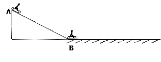 1、计算题 如图,在游乐场的滑冰道上有甲、乙两位同学坐在冰车上进行游戏。当甲同学从倾角为θ=300的光滑斜面冰道顶端A自静止开始自由下滑时,与此同时在斜面底部B处的乙同学通过冰钎作用于冰面从静止开始沿光滑的水平冰道向右做匀加速运动。设甲同学在整个运动过程中无机械能变化,两人在运动过程中可视为质点,则