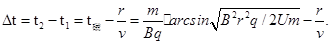 设带电粒子在磁场中做圆周运动的圆心角为θ,由几何知识得sinθ=r/R
