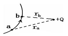 3、选择题  如图,带电粒子射入一固定的、带正电的点电荷Q的电场中,沿图中实线轨迹从a运动到b,a、b两点到点电荷Q的距离分别为,且b为运动轨迹上到Q的最近点,不计粒子的重力,则可知(   )