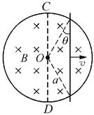 2、选择题 半径为a的导体圆环和长度为2a的导体直杆单位长度电阻为R0。圆环水平固定放置,整个内部区域分布着竖直向下的匀强磁场,磁感应强度为B。杆平行于直径CD在圆环上以速度v向右做匀速运动,杆上有两点始终与圆环保持良好接触,从杆在环中心O点处开始计时,杆的位置用θ表示,如图所示。则