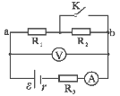1、选择题 如图所示电路中,电源电动势ε恒定,内阻r=1Ω,定值电阻R3=5Ω.当电键K断开与闭合时,ab段电路消耗的电功率相等.则下列说法中正确的是(? )