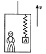 4、计算题 一个质量为50 kg的人站在升降机的底板上,升降机的顶部悬挂了一个弹簧测力计,弹簧测力计下面挂着一个质量为mA=5 kg的物体A,当升降机向上运动时,他看到弹簧测力计的示数为40 N,如图所示,g取10 m/s2,求此时人对底板的压力。