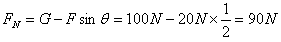 由牛顿第三定律得物体对地面的压力为90N,方向竖直向下
