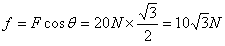 1、计算题 重量G=100N的物体置于水平面上,给物体施加一个与水平方向成θ=30°的拉力F,F=20N,物体仍处于静止状态,求: