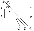 1、选择题 小明同学在实验室里用插针法测平行玻璃砖折射率的实验中,已确定好入射方向AO,插了两枚大头针P1和P2,如图所示(①②③是三条直线)。在以后的操作说法中你认为正确的一项是(?)