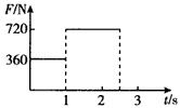 3、选择题 质量为60KG的消防队员从一根竖直的长直轻绳上由静止滑下,经2.5 s落地,轻绳上端连接力传感器,它记录轻绳受到的拉力变化情况如图所示,g=10 m/s2,则下列说法正确的是