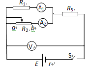 1、选择题 在图所示的电路中,E为电源电动势,r为其内阻,R1和R3均为定值电阻,R2为滑动变阻器。当R2的滑动触头在a、b间中点时闭合开关S,三个电表A1、A2和V的示数分别为I1、I2和U。现将R2的滑动触头向a端移动,则三个电表示数的变化情况是
