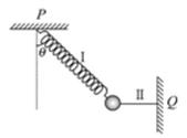 1、选择题 如图所示,质量为m的球与弹簧Ⅰ和水平细线Ⅱ相连,Ⅰ、Ⅱ的另一端分别固定于P、Q.球静止时,Ⅰ中拉力大小为FT1,Ⅱ中拉力大小为FT2,当仅剪断Ⅰ、Ⅱ中的一根的瞬间,球的加速度a应是