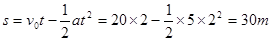 1、填空题  汽车以20 m/s的速度作匀速直线运动,刹车后的加速度为5 m/s2。开始刹车后,前2秒内通过的位移为______________前6秒内通过的位移为______________________。